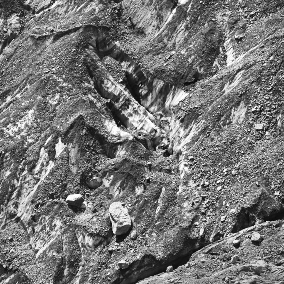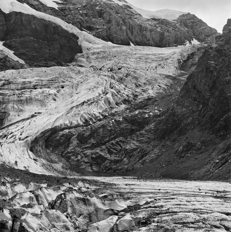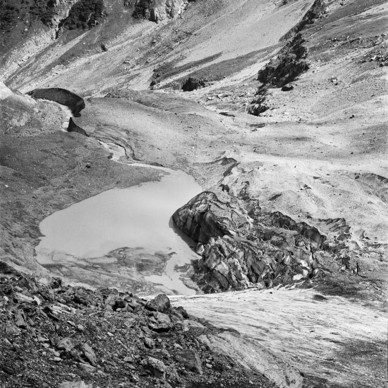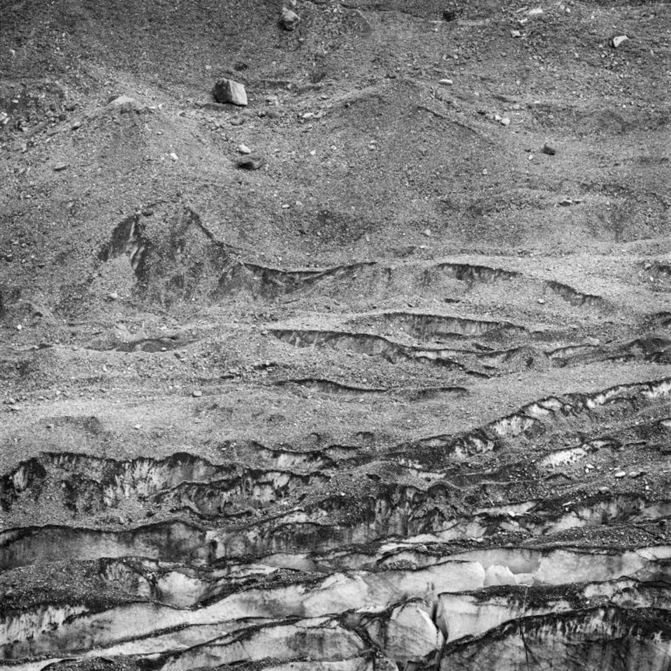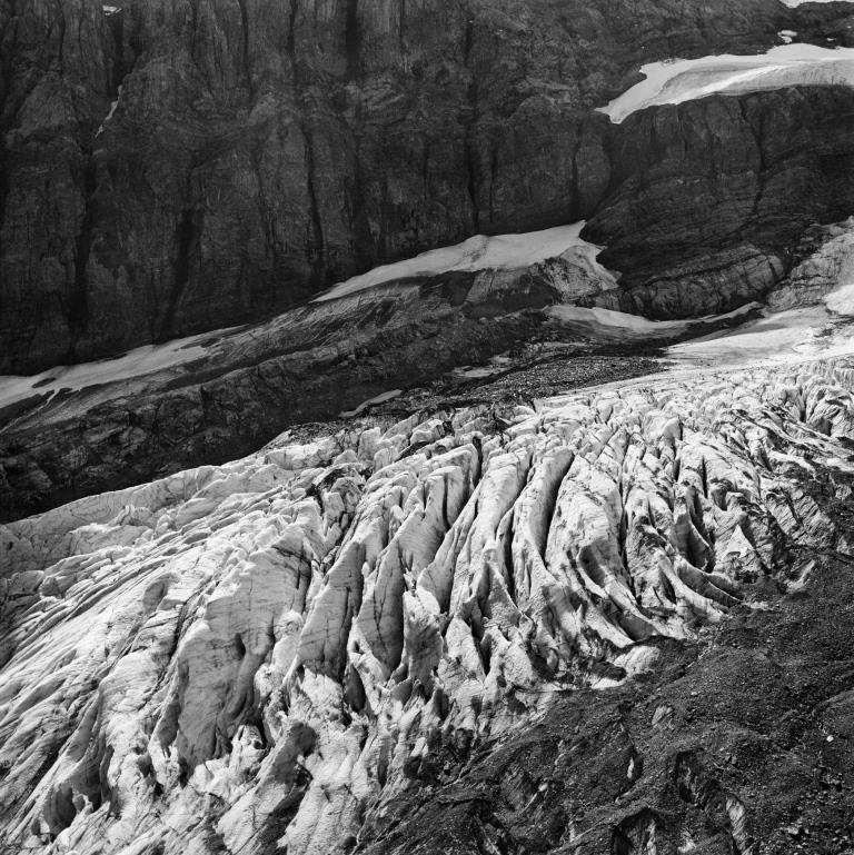 Bifertengletscher 2017 Arbeit in 29 Teilen, analog auf 6 x 6 und 24 x 72 Hasselblad und x-pan Kohlepigmentprints auf Innova Photo Smooth Cotton Natural White